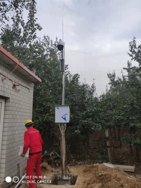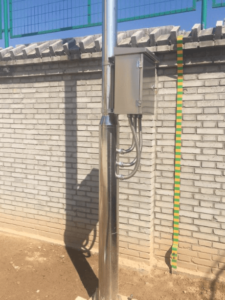 施工現場,監控桿高度4.5米,材質為純304不銹鋼,壁厚4mm。